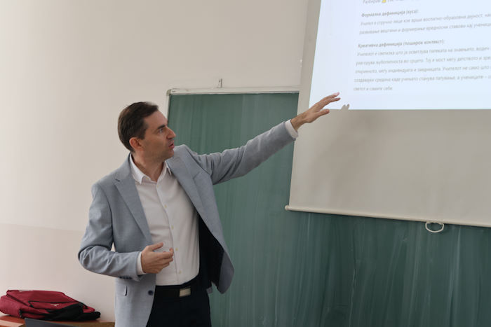 „Ова, инаку, е дел од серија активности на оваа тема“, истакна деканот на Факултетот за образовни науки, проф. д-р Трајче Стојанов. „Иако поводот е Денот на учителот - 5 октомври, оваа работилница денес е во рамките на една иницијатива која неодамна ја преземавме, за организирање на серија предавања, работилници и трибини на важни прашања кои го тангираат образованието, а кои се актуелни во совремието. Оваа година тоа е темата Вештачка интелигенција и образование и ова е второ предавање во тој серијал, ќе следуваат уште. Од овие работилници ќе биде објавен и зборник, и некаков прирачник кој треба да им биде од полза на наставниците, и на сите оние што се интересираат за овие најактуелни проблеми во светот на науката и образованието. Вештачката интелигенција, секако, е една од првите за која се јавува нужна потреба да се дискутира од неколку важни аспекти, вклучително и етничкиот, и техничкиот, педагошкиот. Факултетот за образовни науки е должен, има општествена одговорност да ги отвора овие прашања“, рече деканот на ФОН, проф. д-р Трајче Стојанов.