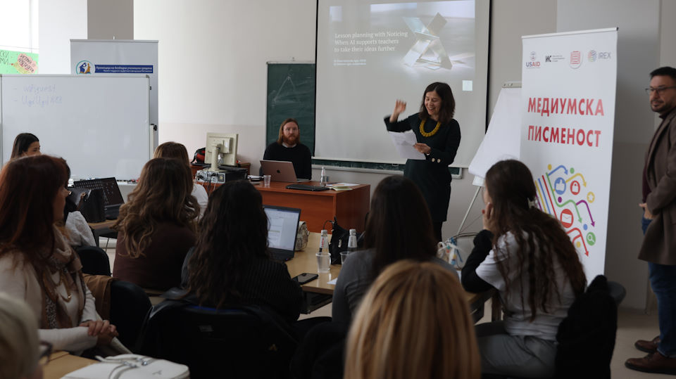 Елена Ончевска-Агер, редовна професорка на Филолошкиот факултет „Блаже Конески“ во Скопје, заедно со д-р Метју Агер, е автор на апликацијата Noticing и ја реализираа денешната обука „Планирање час со Noticing: Како вештачката интелигенција им помага на наставниците да ги доразвијат сопствените идеи“.