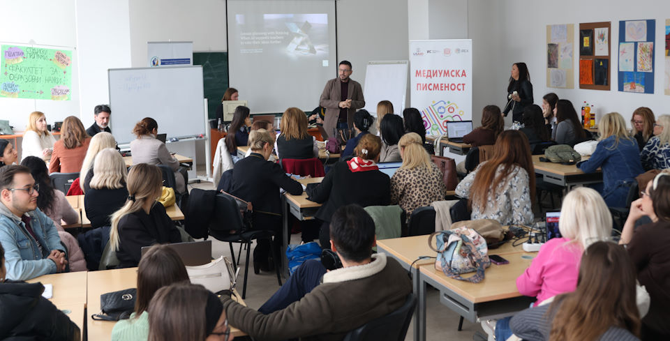 - Почнавме со една обука пред околу една година, серијата продолжува и денес, а последната обука беше предавањето на професорот Сашо Коцевски. Денес веќе имаме обука за софтвер, алатка која им помага на наставниците во планирањето на нивните активности. Факултетот за образовни науки ги иницира овие активности за најновите трендови во образованието кои ја вклучуваат и вештачката интелигенција и употребата на најсовремените технологии. Тоа е тренд кој нашиот факултет, а и современото образование, сакале не сакале мора да го следи – изјави деканот на Факултетот за образовни науки, проф. д-р Трајче Стојанов.